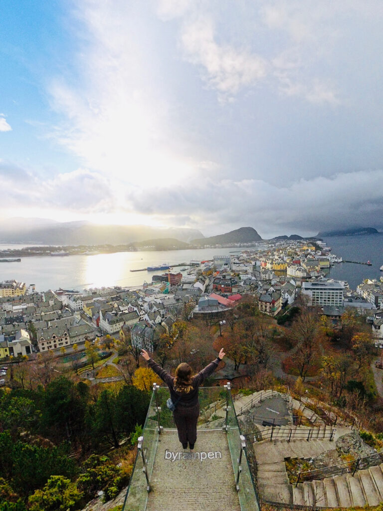 Dzień 2Drugiego dnia czekała na nas wyprawa na Sukkertoppen (czyli „Cukrowa Góra”) jedno z najpiękniejszych miejsc widokowych w okolicy. Trasa była średnio wymagająca, ale zdecydowanie warta wysiłku z samego szczytu rozpościerały się spektakularne widoki na Ålesund, Morze Norweskie i otaczające fiordy.
