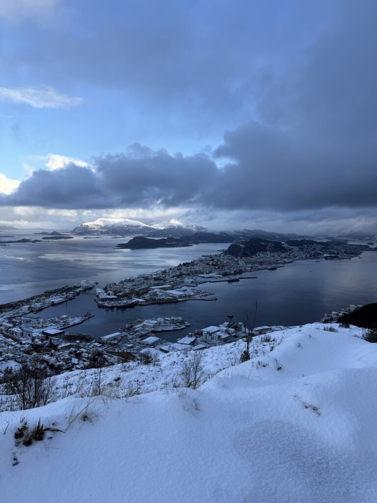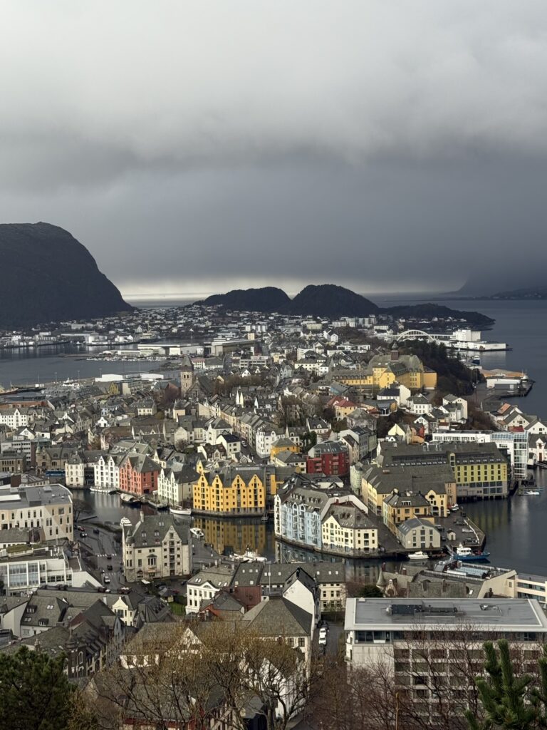 Po przyjeździe rozpoczęliśmy naszą przygodę od spaceru po malowniczym centrum Ålesund – miasta znanego z architektury w stylu secesyjnym i pięknych widoków na ocean. Weszliśmy na słynny punkt widokowy Aksla, z którego roztacza się panoramiczny widok na całe miasto i okoliczne wyspy.