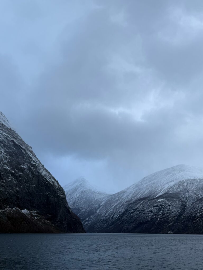 Trzeciego dnia wyruszyliśmy w niezapomniany rejs do słynnego Geirangerfjord jednej z największych atrakcji Norwegii wpisanej na listę UNESCO. Rejs w jedną stronę trwał około 3 godziny, a na miejscu spędziliśmy 2,5 godziny. Zrobiliśmy zdjęcia przy punktach widokowych skąd, rozciągał się zachwycający widok na cały fiord.